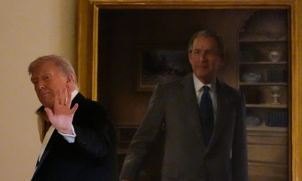 Politics / February 23, 2026 Remarkably, Trump seems on the verge of outdoing George W. Bush in reckless, stupid militarism. Ad Policy Donald Trump waves as...