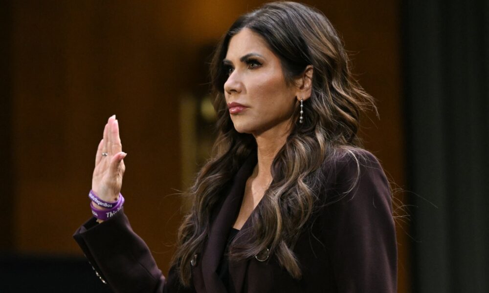 Finally, someone in the administration is paying for their cruelty and incompetence. Ad Policy Homeland Security Secretary Kristi Noem is sworn in as she testifies during...
