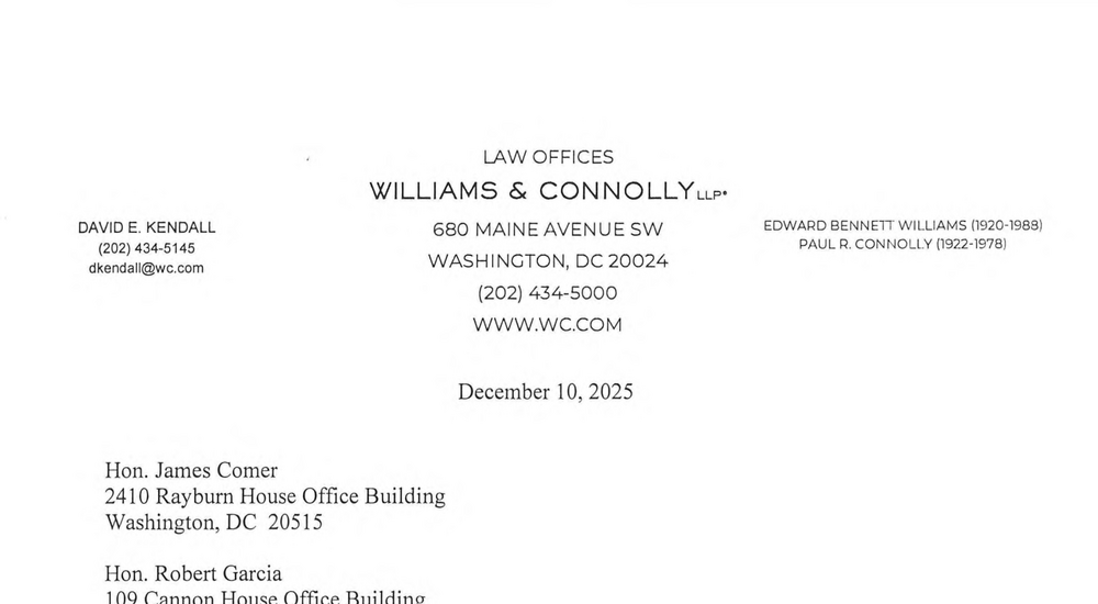 WILLIAMS & CONNOLLY LLP Hon. James Comer Hon. Robert Garcia December 10, 2025 Page 3 That means, of the original eight individuals (aside from my clients)...