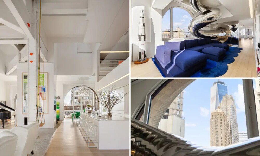 Call it a fun house. High above Lower Manhattan, a Tribeca penthouse that swaps elevators for a far more playful ride is searching for its next...