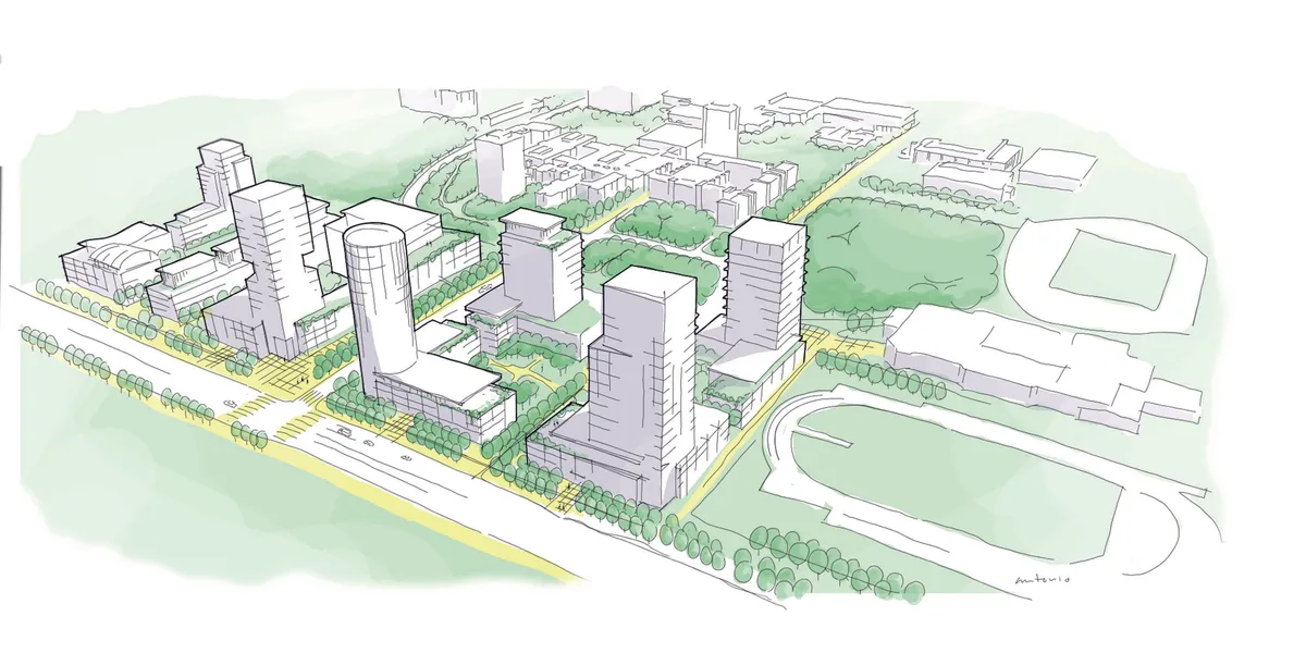 In total, the project will include the development of around 190 acres of land to be carried out over the next 25 to 30 years. This will include the delivery of different types of housing, such as student housing, affordable rental, seniors housing, and market housing like multi-family buildings, town homes, condos, mid-rise apartments, and live work spaces. In addition, the community would contain office, commercial, academic, research, and community uses, creating a collaborative and inter-linked landscape.